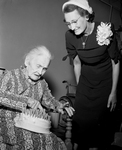Mrs. Alice Hayes is shown counting 99 candles on her birthday cake with an unidentified woman to the right. Published in Fort Worth Star-Telegram evening edition June 9, 1951.