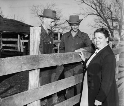 Image show Robert, 17, left, and George Pruser, 19, are going into the registered Shorthorn business as a result of their junior calf feeding. The sponsor of their 4-H Club is Mrs. O. D. Bradford. Published in Fort Worth Star-Telegram morning edition April 2, 1950.