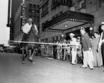 Bob Rothel, Weatherford, won the horse race for the premiere of the motion picture "Fort Worth" in less than 24 minutes for 10 miles. Bob Rothel can be seen riding on a horse as they race towards the victory line. Published in Fort Worth Star-Telegram evening edition June 14, 1951.