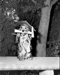 Clement's Champagne Bubbles, a red cocker spaniel owned by Mrs. Jean Clement is one of the 16 dogs which have finished training in the Fort Worth Dog Training Club's obedience classes. The dog is seen holding a diploma in its mouth while wearing glasses and a graduation cap with tassel. Published in Fort Worth Star-Telegram evening edition June 22, 1951.