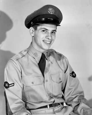 Private first class, Lawrence R. Harris Junior, 18, son of Mr. and Mrs. L. E. Harris Senior, of 4912 Ohio Garden Road. River Oaks, has completed an Air Force administrative course at Kansas State Teachers College and has been assigned to Vance Air Base, Enid, Oklahoma. Harris is a graduate of Technical High School. Lawrence R. Harris is shown wearing a uniform in the photograph. Published in Fort Worth Star-Telegram evening edition June 16, 1951.