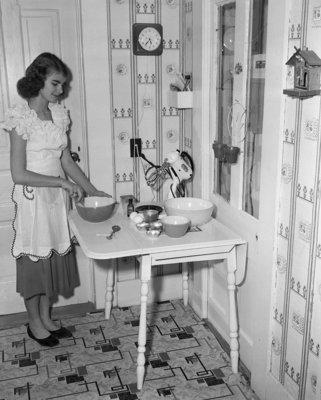 Image shows Marie Petty makes a good hand in the kitchen, excelling at baking and food preservation, her mother says. Cooking has been part of her 4-H work which has resulted in an outstanding record. Published in Fort Worth Star-Telegram morning edition April 2, 1950.