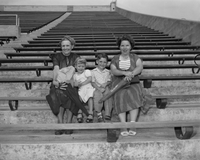 Mrs. Betty Clough with her two children, Danny Ray, 5, and Mary Ann 4, and Mrs. H. W. Russell, left, Mrs. Clough's aunt.