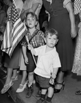 Flag-bearing children who watched the parade closely are Roberta Marshall, 5, and Jim Leslie Marshall, 2. Published in Fort Worth Star-Telegram morning edition June 17, 1951.