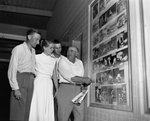 Spectators pause to look at the new pictures framed in the entrance area at the ball park. Left to right are Mr. and Mrs. F. W. Buehler Jr., William Gene Martin, back, and Lewis Johnson. Published in Fort Worth Star-Telegram morning edition June 24, 1951.