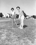 Mrs. Bill Hunter (left) and Mrs. Joe Torpey try a few chip shots in the yard - while their husbands hustle off to the ball park for a morning workout.