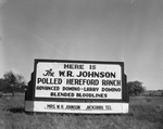 This sign stands in one of the Johnson ranch pastures alongside Highway 99. Published in Fort Worth Star-Telegram July 1951.