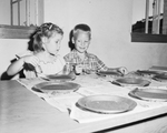 Judy Federsen, 7348 Brazos, and Donald Jones, 6432 Greenway, both 6, have helped in painting offering plates in Ridglea Presbyterian Vacation Church School.