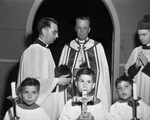 Reverend Jose Vega, left, priest-in-charge of the Mexican Church of St. Mary's, and Retired Reverend C. Avery Mason, bishop of the Episcopal Diocese of Dallas. Published in Fort Worth Star-Telegram morning edition June 21, 1951.