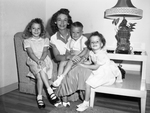 Mrs. Charles E. Smith and children, Janis, left, Pamela, right, and Tony. Mrs. Smith recently was elected president of District 4, auxiliary to the Texas State Chiropractic Association. Published in Fort Worth Star-Telegram morning edition June 28, 1951.