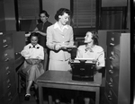 Working at the volunteer center, Council of Social Agencies, left to right, Mmes. Richard U. Simon, George W. Parker Junior, volunteer chairman; Edith Williams, director, and T. B. Romine Junior.
