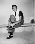 Image shows Bobby Malone tying his shoes after winning a match in the Rivercrest Invitational Golf Tournament. Published in the evening edition, June 23, 1951.