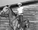 The FFA youth finds working his dairy herd is easier with a horse to help him. He's proud of the animal and new saddle. Published in Fort Worth Star-Telegram July 1951.
