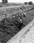 Youthful farm hands on the Boswell place spread the fresh cut silage evenly before it is finally packed. Published in Fort Worth Star-Telegram July 1951.