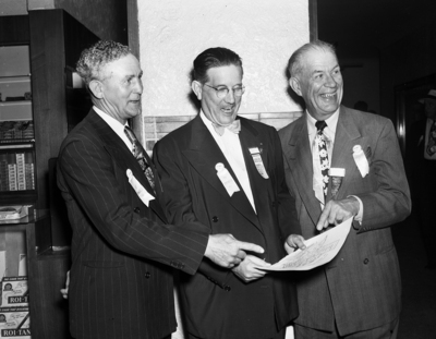 Fort Worth's J. T. Jones, left, chairman of the executive committee of Carpenters is shown at the Texas State Federation of Labor convention in Galveston with the federation president, W. J. Harris of Dallas, center, and Ed Muckelroy, sanitation commissioner. Published in Fort Worth Star-Telegram morning edition June 28, 1951.
