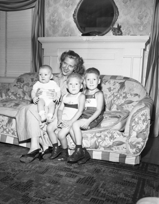 All future pitchers - Mrs. Mel Himes has a good start toward her own baseball team. Left to right are Richard, 5 months, Paul, 2 1/2, and Mel Junior, 3 1/2.
