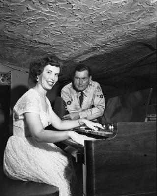 Organist Edith Davies at the New Grotto, formerly Pirate's Cave, will begin her 15th consecutive week of entertaining customers, such as Private First Class Charles Lininger. Published in Fort Worth Star-Telegram evening edition June 29, 1951.