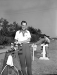 C. A. De Wees, a new pro golf player at Cleburne Country Club. He appears to be in the middle of practice. Published in Fort Worth Star-Telegram morning edition June 27, 1951.