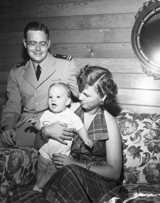 Lieutenant and Mrs. James V. Burnett of San Diego and son, James Junior, will return to their home Sunday. They have been visiting their parents, Mr. and Mrs. H. T. Dean and Mr. and Mrs. Raymond V. Burnett.
