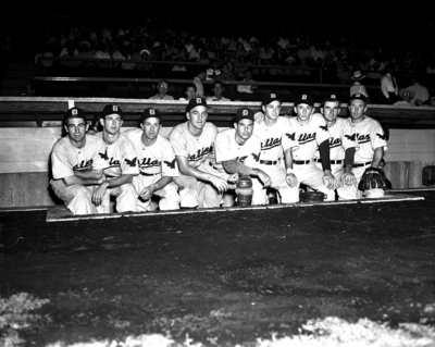 Tornay, Frank; Perry, Clyde; Lanfranconi, Walt; Fridley, Jim; Kinaman, Dick; Farotto, Lou; Narleski, Ray; Meyer, L. D. 1915-2003; Abernathie, Bill