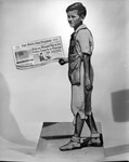 Copy of a photo of a life-size cutout of early Amon G. Carter Jr. selling the Fort Worth Star-Telegram newspaper.