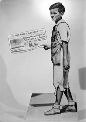 Copies of Amon Carter Jr. selling newspaper. Same copies files with 4 x 5 negatives.