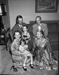 Mr. and Mrs. J. Lee Johnson III and children (Sheila Johnson and J. Lee Johnson IV) with their guests Dean and Mrs. Clarence Manion of South Bend, Indiana. Manion is Dean of the College of Law at the University of Notre Dame. (series not published). Published shot of Mr. and Mrs. Manion in regular file.
