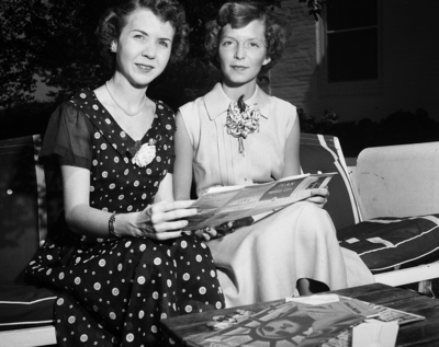Miss Madeline Walker, left, 2009 Alston Avenue, and miss Mary Sue McFaddin of Little rock left by plane on a trip to Mexico with their aunt, Mrs. Y. Q. McCammon, 3215 Acondale, and Miss Maleta James, 2617 Lubbock. The trip is McCammon's 16th birthday gift to Miss McFaddin. Published in Fort Worth Star-Telegram morning edition July 13, 1951.