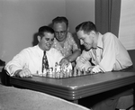 Three of the 125 players to enter the Fort Worth chess tournament talk shop while awaiting for the game. Left to right - Dr. J. Gonzales, Alfred Ludwig and William Byland will take part in the 52nd Annual Chess Congress and U. S. Open Chess Championship Tournament at the Hotel Texas. Published in Fort Worth Star-Telegram morning edition July 9, 1951.