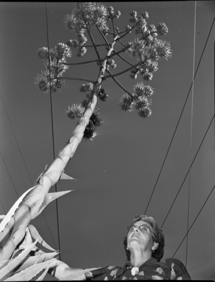 Skyscraper - This century plant got up and grew before it decided to bloom. And when it blossoms this season, its blooms were literally set up in the air - 28 feet to be exact. Looking at her giant plant in Mrs. C. O. Culpepper, 3540 Avenue K.