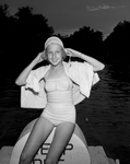 Image shows back stroke titlist, Janice Aikman. She is shown adjusting her cap after winning first places in the 14 and under and 12 and under girls back stroke races. She came in second in the 25 yard free style. Published in the Fort Worth Star-Telegram morning edition, July 15, 1951.