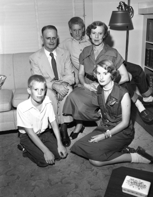 New Judge and Family - Fisher T. Denny, appointed Monday to fill the unexpired term as judge of the 96th District Court by Governor Shivers, poses with his family. At the new judge's left is his wife. Seated are Kleberg, 10, left and Ann, 16, right. Seated behind the parents is Sam, 13.