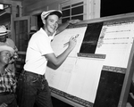 Golfer Tommy Parnell is shown marking the number 67 on a board, the same number that earned him a medal during the qualifying round of the City Golf Tournament held at the Ridglea golf course. Published in the morning edition, July 17, 1951.