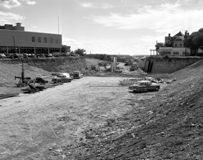 Fort Worth's East-West expressway under construction, looking west along the expressway, at the Summit Avenue overpass.