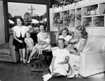 The Children's Hour with, left to right, Mrs. Harold Upton and son, Tommy, Mrs. T. P. Harrison and Bill. and Mrs. H. F. Hugos, Carolyn Hugos, front, and Sharon Hugos. Published in Fort Worth Star-Telegram morning edition, August 5, 1951.