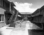 New Apartments - The picture shows the patio between the two wings of newly completed Victory Chateau Apartments, revealing the New Orleans French architectural influence.