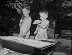 Sticky stuff - Melted fudgesicles sort of slowed down the artistic endeavor of Jim Belew, 4, right, but Mike Moore, 5, took the ice cream and paint brush both in his stride. They're wearing "graduating" palette pins form the Fort Worth Children's Museum Paint and Splatter Club on their shorts. Jim lives at 3121 West cliff road W., and Mike across the street at 3144 West Cliff.
