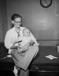 Carroll Jackson is one of the proudest poppas in the business office. He is shown here with Karen Lynn, eight months old.