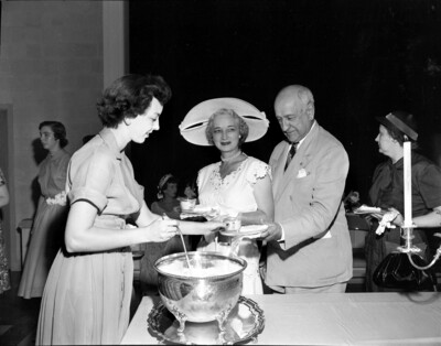 Miss Carolyn Tandler of Larchmont, N. Y. at guest book. Mr. and Mrs. Amon Carter in background.