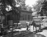 Not For You, Frank - Forest Park Zookeeper Hamilton Hittson, tells Frank the zebra that the house with the high door is not for him but is for the giraffes which soon will be housed there. Frank is a next door neighbor.