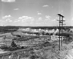 Height of Marble Falls Blast - A dynamite blast Monday destroyed the six foot high dam across the Colorado River at Marble Falls as the Lower Colorado River Authority prepared to fill the stream with water to create a new lake between two new dams. The picturesque falls, from which the town was named, are shown. At right is the old power plant which once furnished power for a cotton mill and the town.