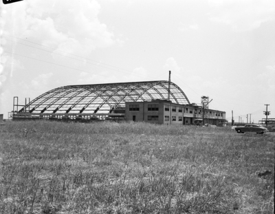 Hangar steel completed - Steel framework for the American Airline hangar at Greater Fort Worth International Airport has been completed. The hangar adjoins the American Airlines office building shown south of hangar.
