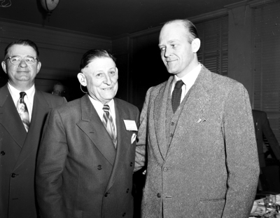 Heart of Texas bankers at the session included Oxsheer Smith, president of the Citizens National Bank of Cameron, left, and Robert Dupree, vice president of the First National Bank of Waco. Published in Fort Worth Star-Telegram morning edition, February 23, 1950.