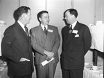 L. F. McCollum of Houston, left, Continental Oil Company president, and Dr. Harold Vagtborg of San Antonio, center, president of Southwest Research Institute, were speakers here at an annual meeting of the 7th District, Texas Bankers Association. With them is A. W. Tarkington of Ponca City, Oklahoma, assistant to McCollum.