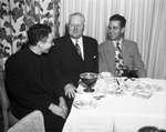 Chin Session - Judson A. Crow of Dallas, new master of the Dallas diocese, fourth degree Knights of Columbus, center, talks with Reverend Lawrence De Falco, left General Worth general assembly faithful friar, and Davis Lambright, right, state deputy.