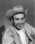 J. B. Brinkley, country singer, seen here wearing cowboy hat and overcoat.