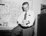 Studies polio here - Dr. Henry Kumm of New York, Assistant director of research for the National Foundation for Infantile Paralysis, is studying a map kept by the Tarrant County chapter charting polio cases here.