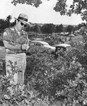 Bomb killing of Dallas, Texas gambler Herbert Noble; Texas Ranger L. C. Rigler holds two strands of wire which Herbert Noble's killer connected to set off the explosion.