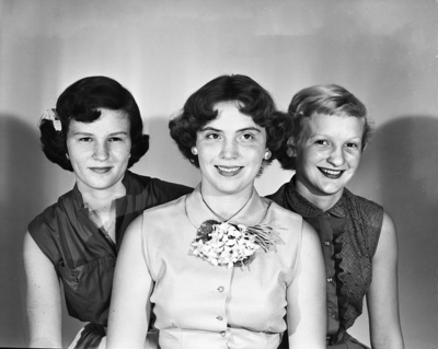 Misses Jean Joy Johnson, left, Joy Brinson, center, and Elaine Russey, right, will leave Sunday on a motor trip with Mrs. Ed Brinson to New Orleans, Gulfport and Pensacola. Mrs. Brinson and her daughter will drive to Miami and St. Petersburg, Florida.