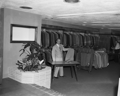 Modern Store - Plant boxes add a modern touch to Jack Caudle, Limited, men's furnishing and clothing store, which will open Friday in a new location at 810 Main. Jack Caudle is shown in a section of the clothing department.